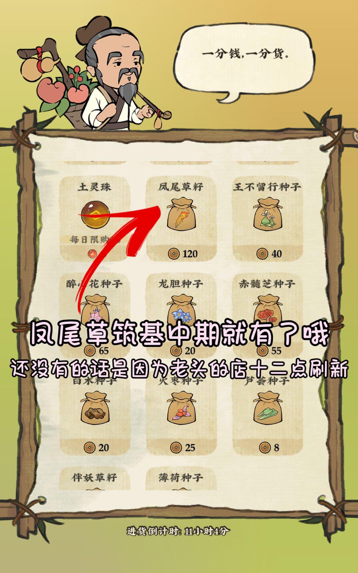 补充修改:薄荷-芦荟-伴妖草-兰花-赤髓芝-白术-龙胆-白豆蔻-凤尾草-菊花 补充:评论有玩家需要两个赤髓芝 补充:偷偷加了个客栈任务的图嘻嘻 补充:筑基中期去老头那里看了一眼有凤尾草了哦 #仙山小农 #仙山日常打卡 #仙山小农攻略征集