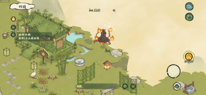 1. 寺庙后院: 大量灵竹,有杜鹃、牵牛花。宝箱在小屋。可钓珍稀鱼,池塘上限一条鱼。