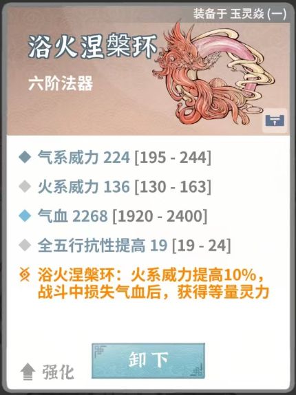 浴火涅槃环(损失气血回灵,配合金缕宝衣形成不死永动机)