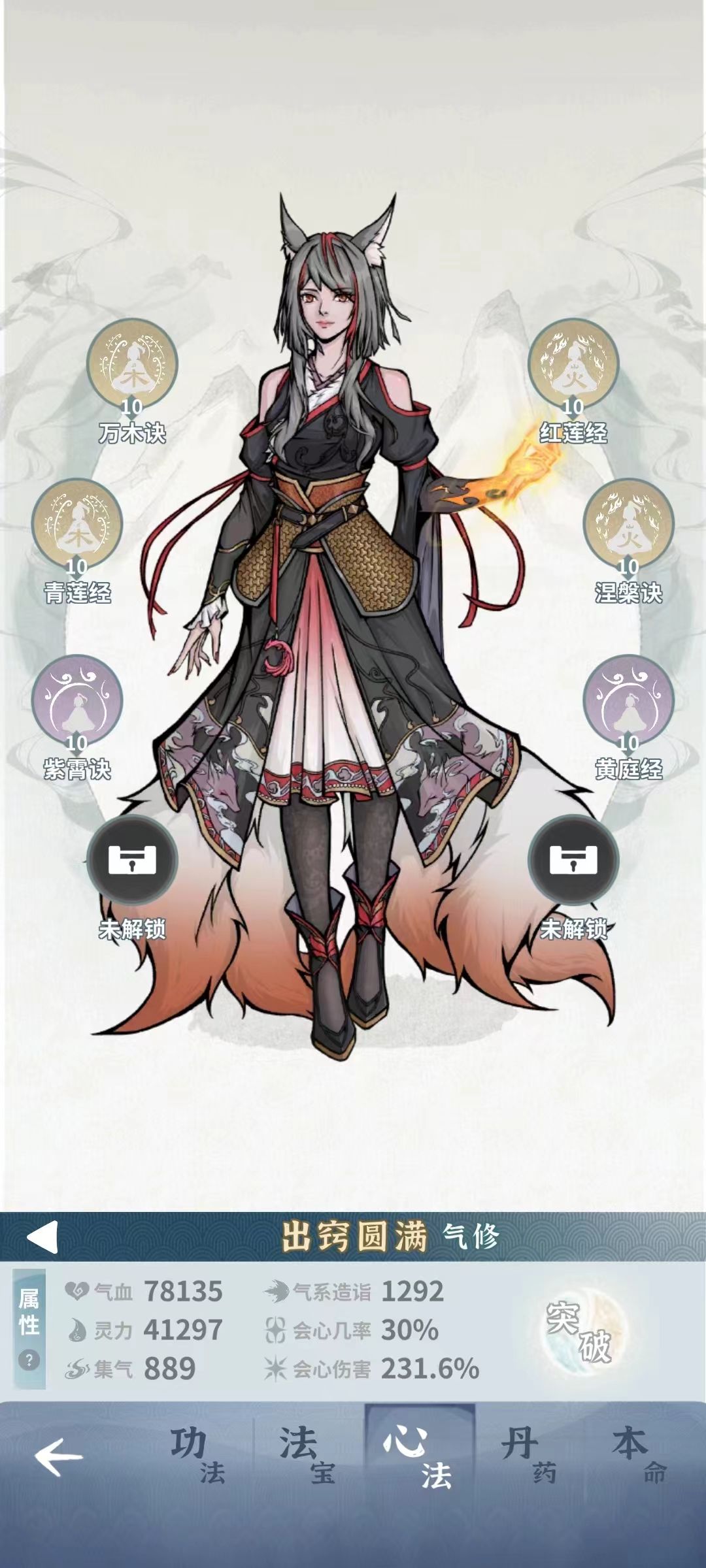 青莲经:气血6000+灵力16%+会心4%(中规中矩,提高会心、气血和灵力)