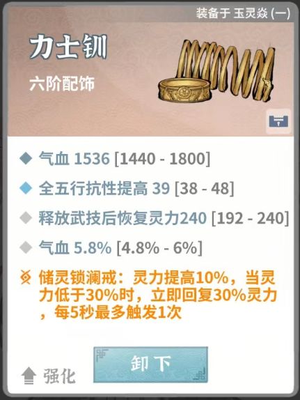 储灵锁澜戒(提高灵力,每5秒回灵,会心高时可带松纹玄青戒,暴击回灵更好用)