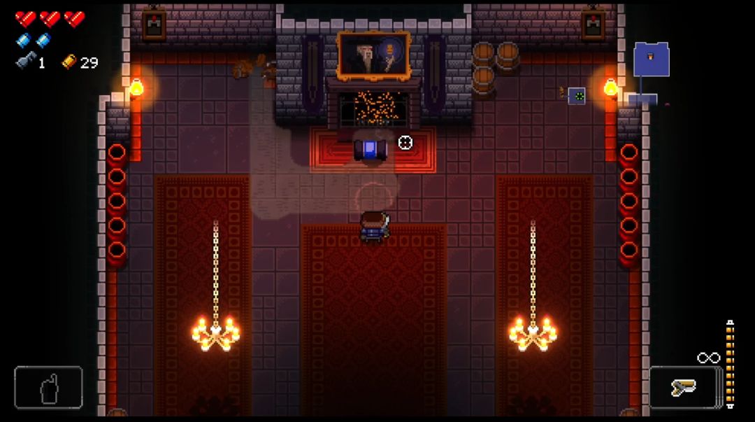 每一层都有一个隐藏房间,比较简单的一种寻找方式,是在宝箱房内,用非无限子弹的枪,攻击四面墙壁,如有裂痕,再使用空响弹,这种方法可以炸开隐藏墙壁,进入通道内获取宝物。