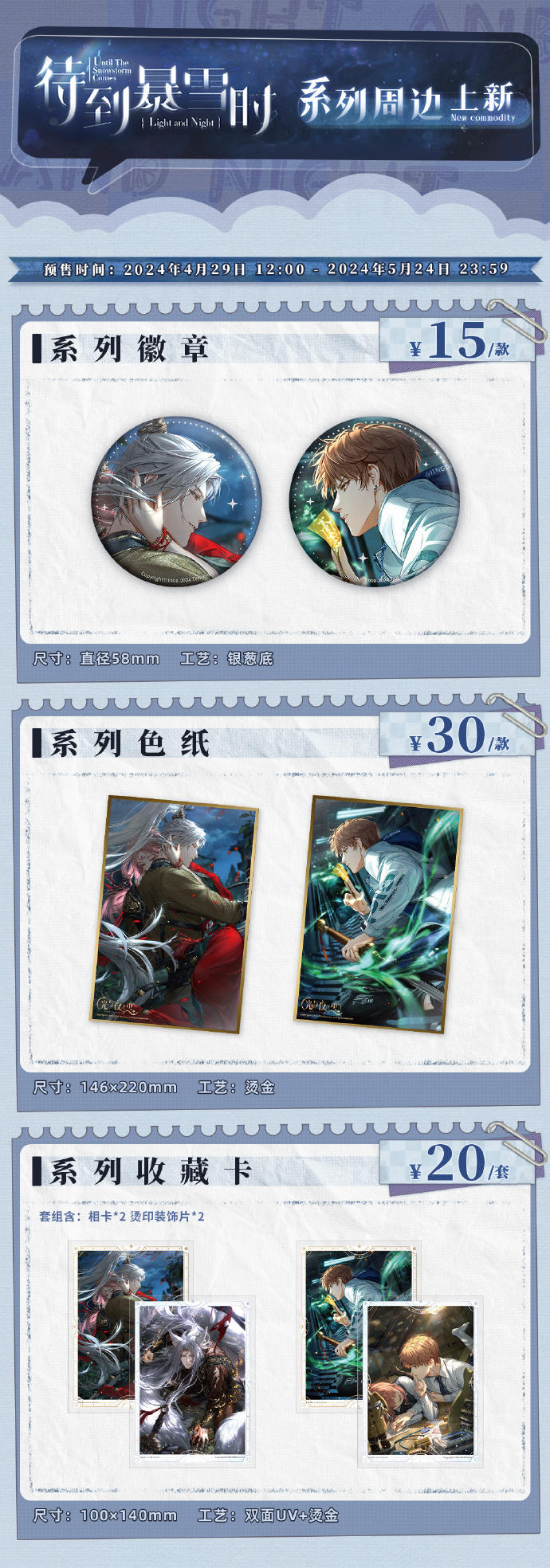 梦系列、光夜变奏Ⅱ-待到暴雪时系列限时周边新品和2024纪念台历返场,即将同时开启!