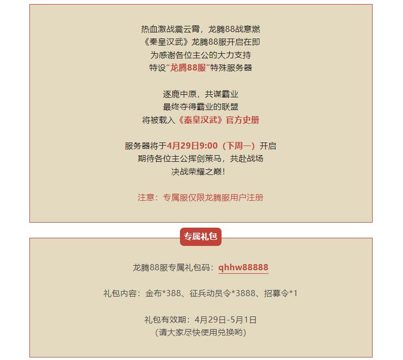 【新服预告】热血激战震云霄,龙腾88战意燃!