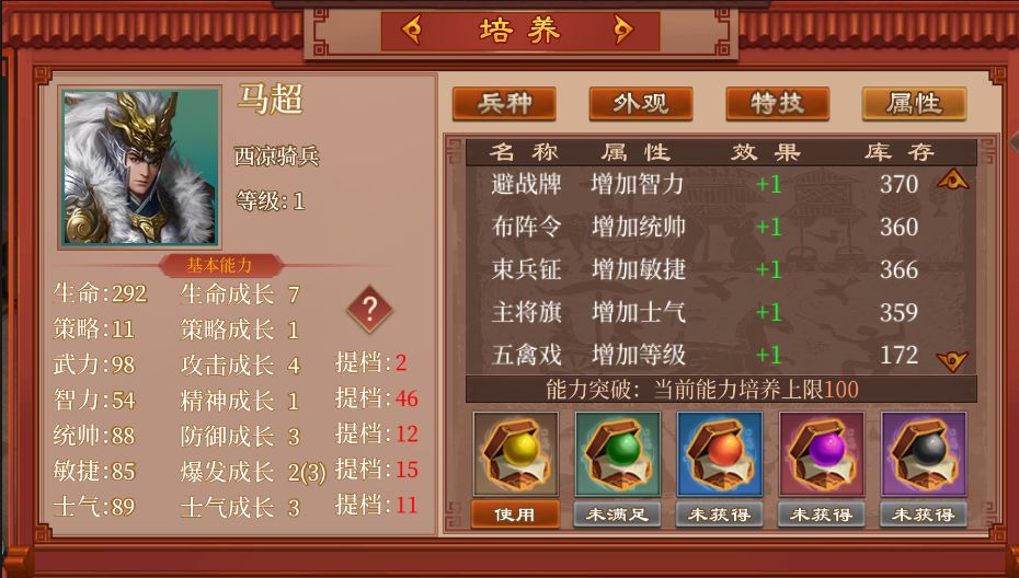 4.查看详细的武将成长与突破规则,并使用果子增加属性。