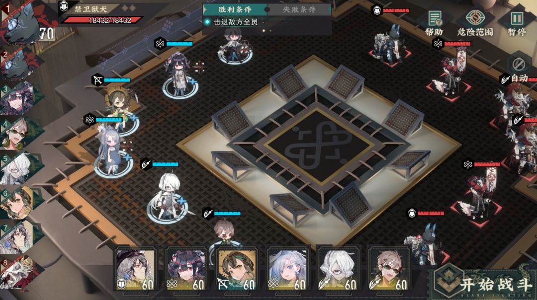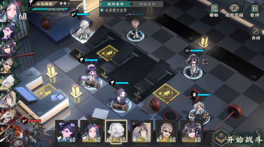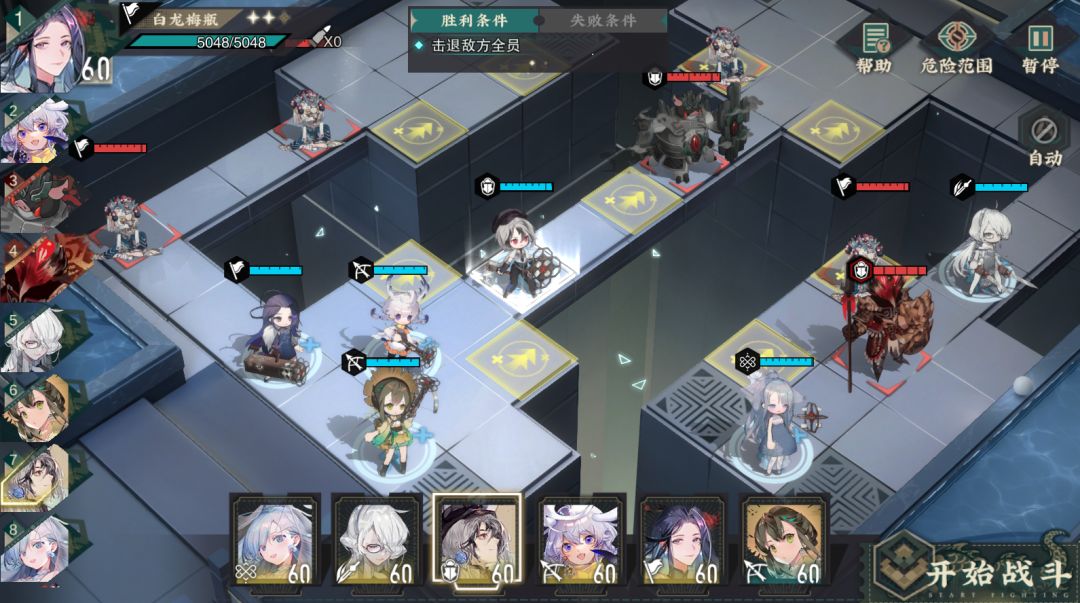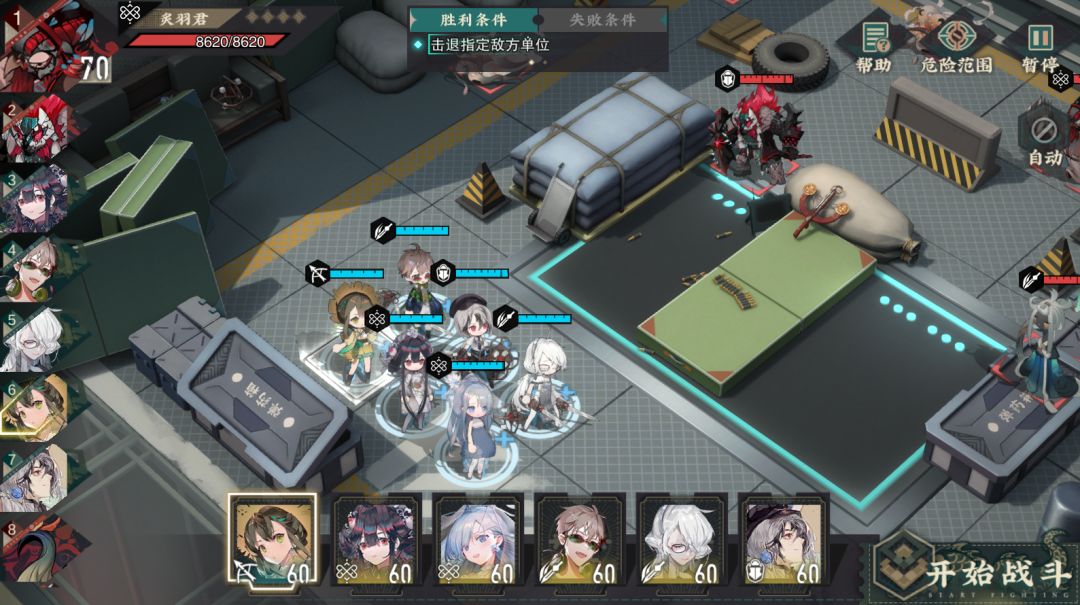 本关卡的敌比较好打,开局站位如下,没有调整。