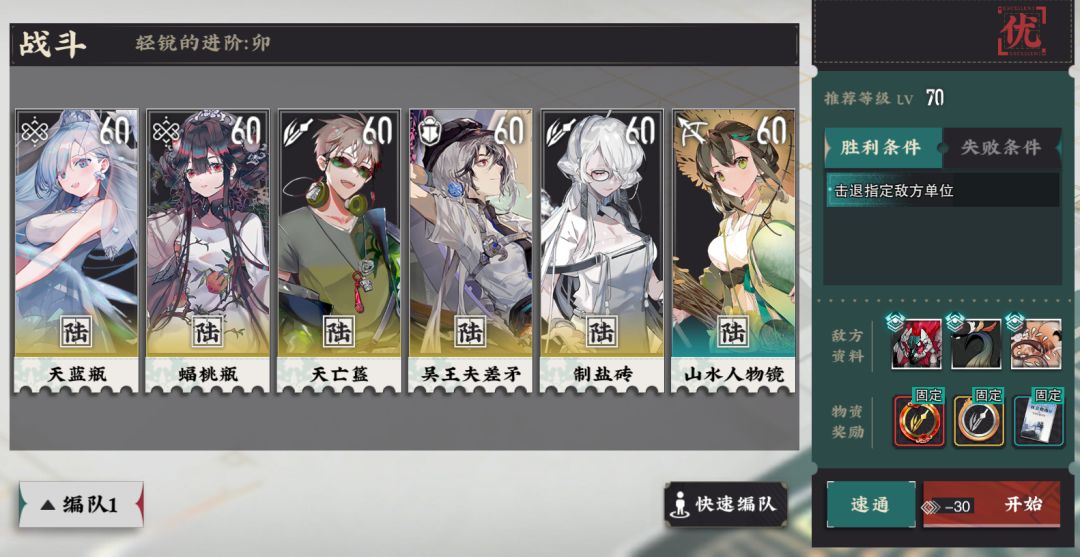 5、敌方注意点:敌方较多,且地形有分隔,建议至少带两个战略。