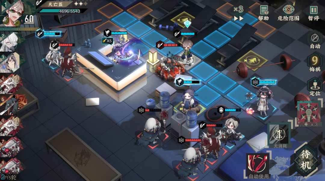 天亡簋往左侧攻击敌人,需要注意被敝裘鸟式攻击后不要走动。其他角色集火攻击敌方中间宿卫,期间可往右侧移动攻击其他敌人。