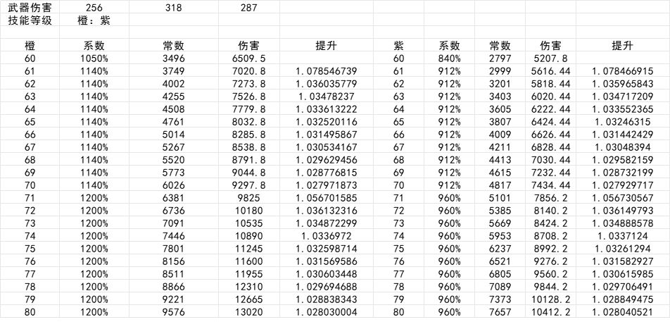 技能等级提升表: