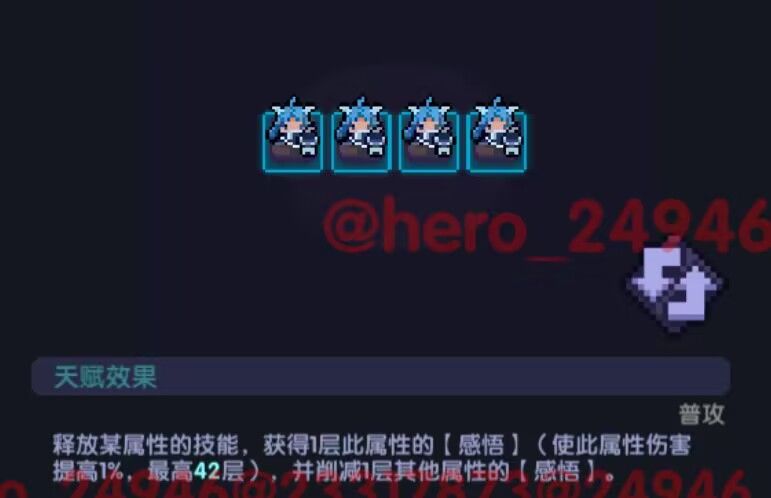 - 伤害里面的伤害提升描述,实际效果为:假设第一次为100%伤害,则第二次为300%伤害,第三次为900%伤害,然后重置为100%,也就是第四次为100%伤害;