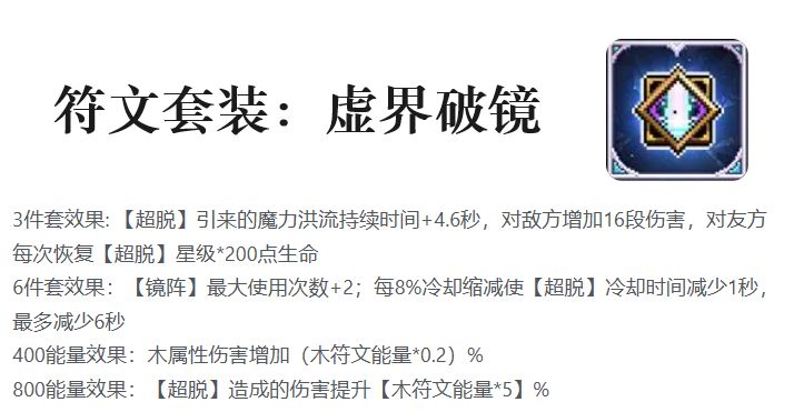 - 三重奏、业火为无效技能,本次不推荐携带。原因:三重奏雷弦刷新用处不大,如果为了感电感觉又多次一举;业火会扣冷却,导致【超脱】冷却变得很高,真空期大幅度拉长。