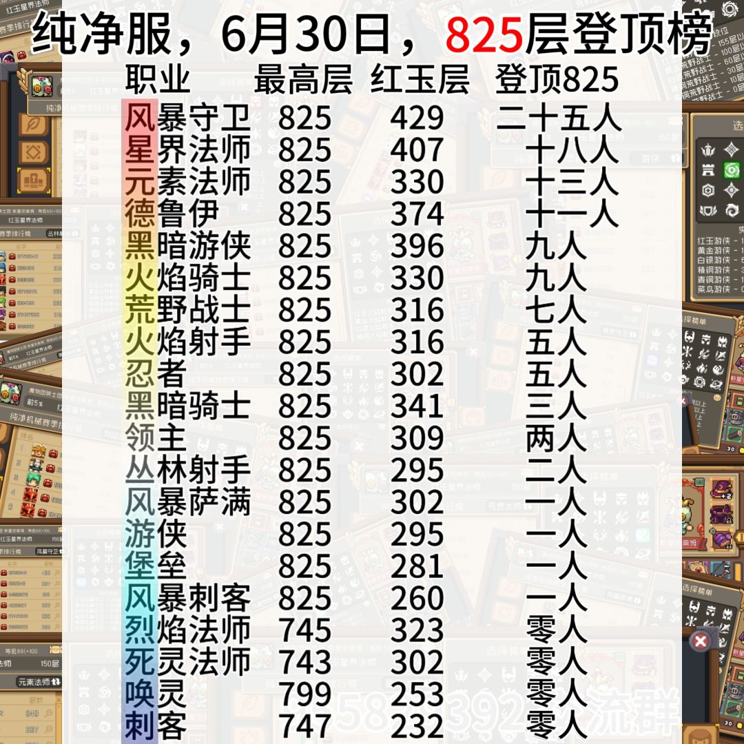 截止6月30日,纯净服死灵法师最高层数位于各职业倒数第一。