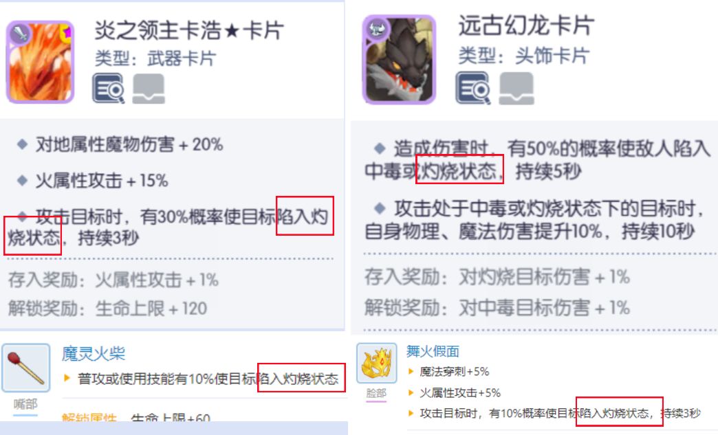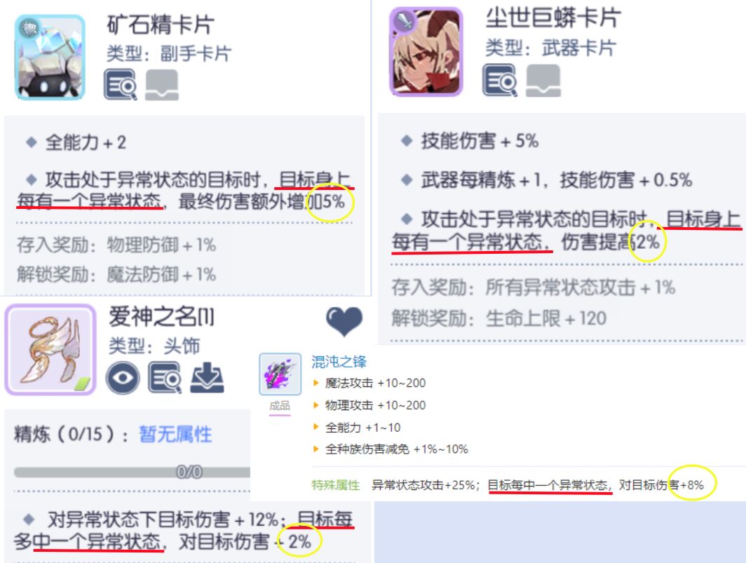 除了职业技能外,卡片头饰也能提供部分异常增伤,甚至可以叠加