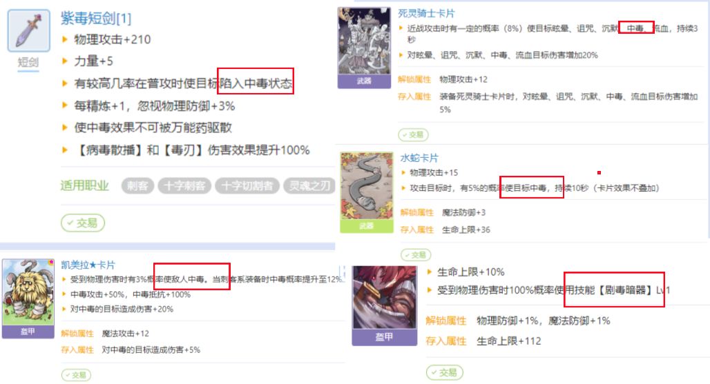重点内容:多个不同来源的中毒效果可以同时生效,例如头饰的中毒尾+刺客涂毒