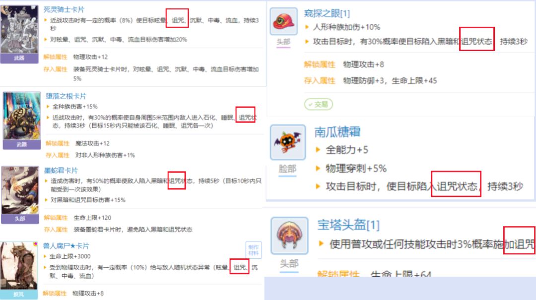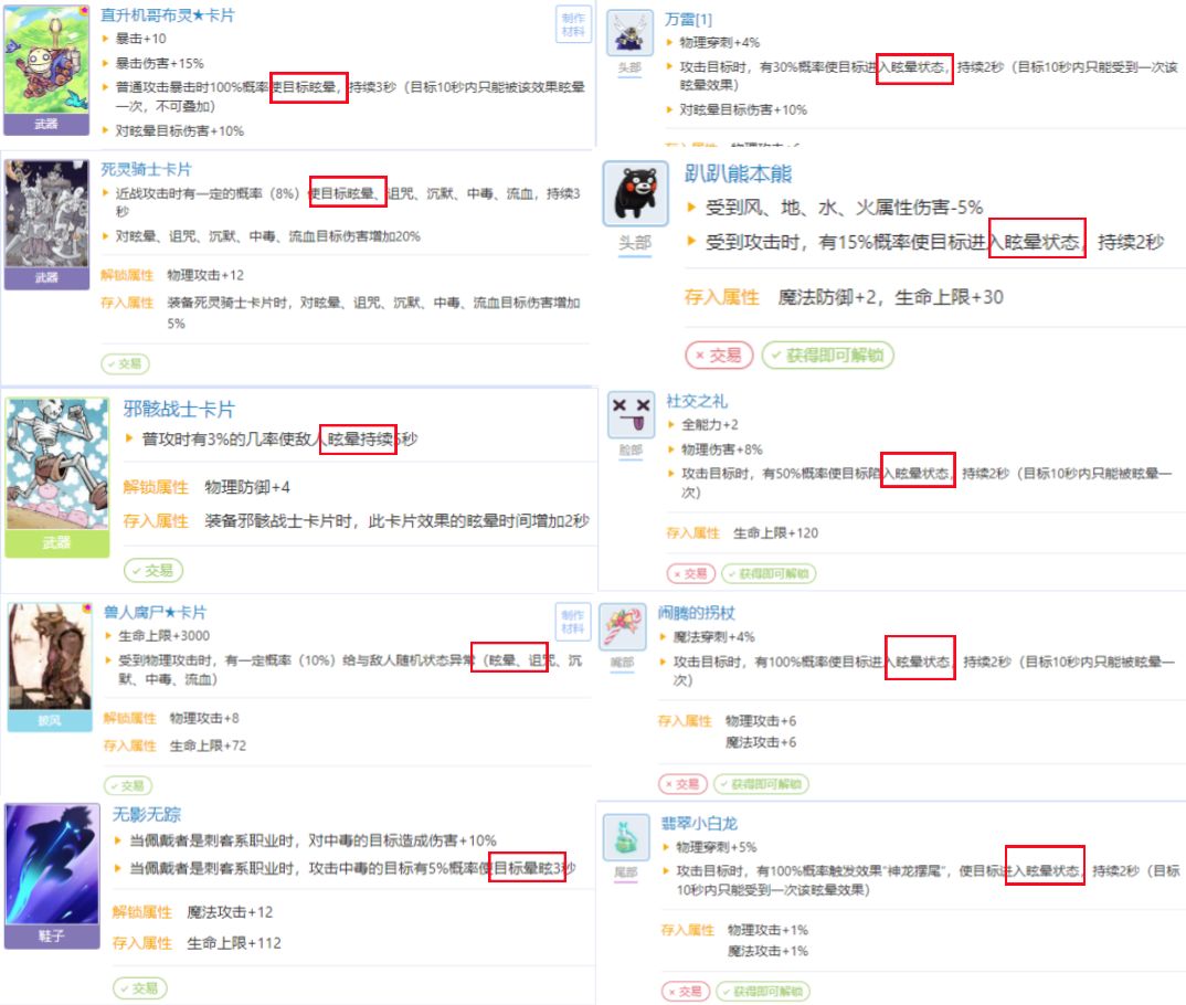 其他方法就是卡片和头饰了,游戏里有就有,没有就没办法了,部分卡片提供免疫,集中在头部位置