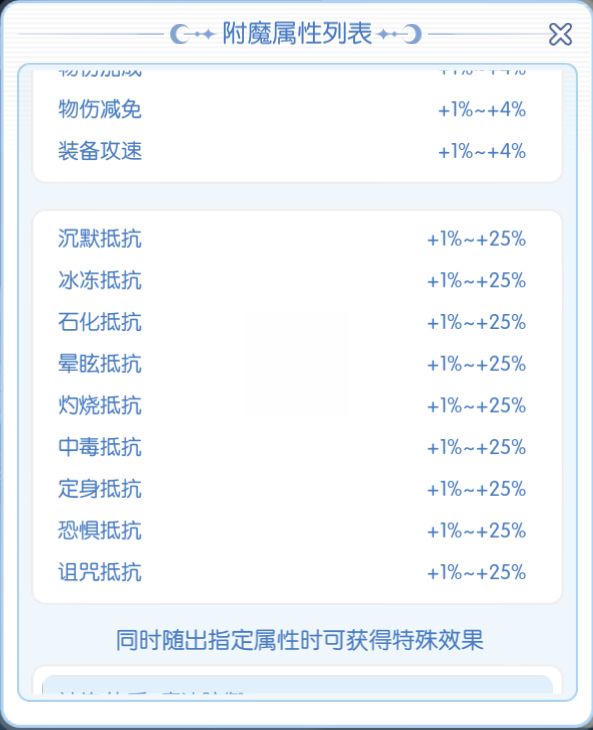 哦,差点漏了,附魔里抗性只有9个,异常一共有12个,那么有3个抗性小朋友缺席了,猜猜是哪3个---勒幽留,和,斯危碎,和,black
