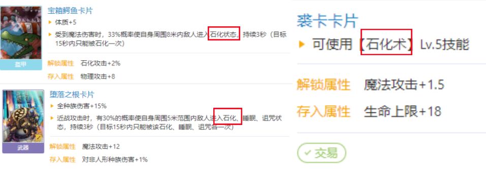 具体点:啥也干不了(被攻击1次则结束),石化状态下无法闪避,每秒损失1%,可以被奥秘符文血腥加成,铠甲变为地属性,物理防御%降低50%