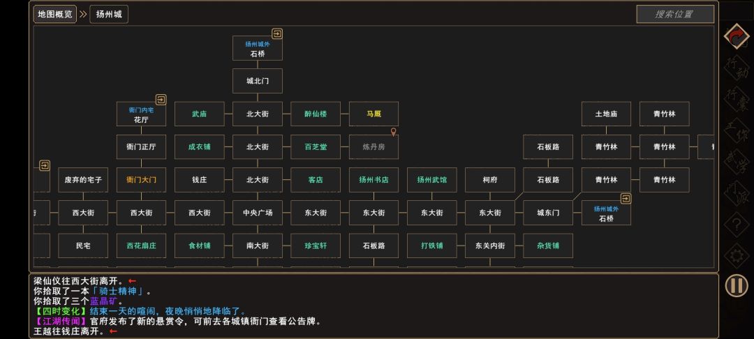 (3)体力不够建议前往 扬州→客店(100银钱)体息,能少量节省前期时间。