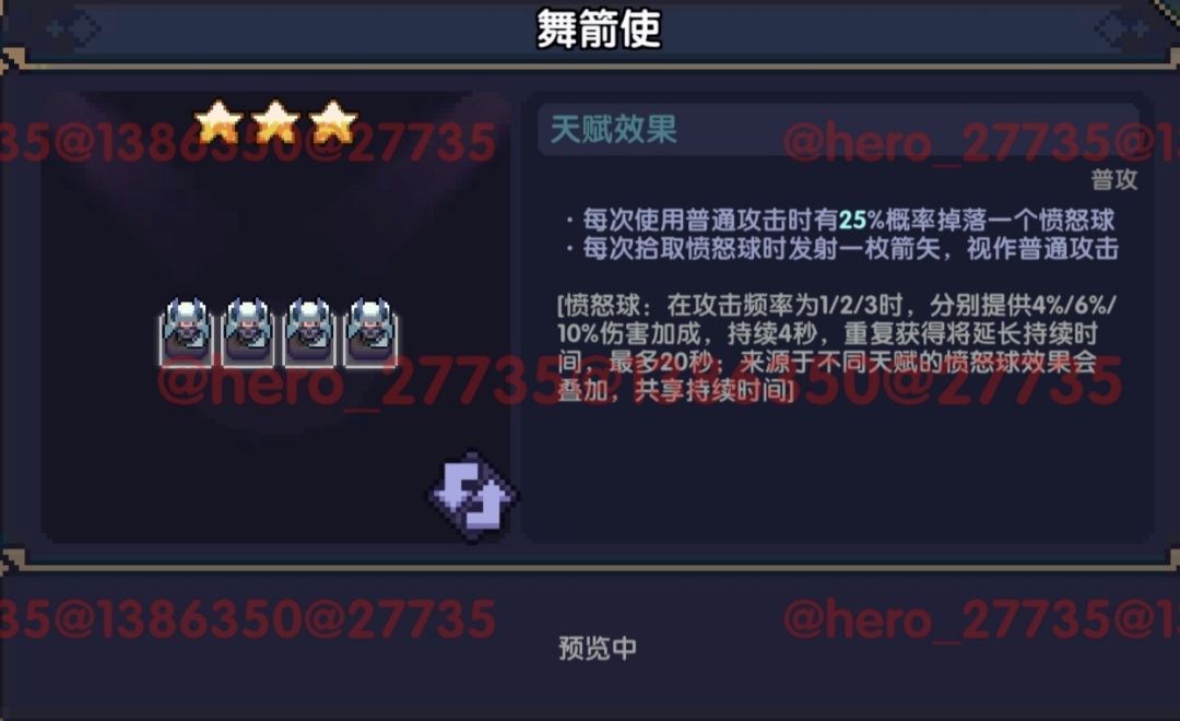 机制:拾取“愤怒球”后,会发射5支蓝色箭(算作一次普攻),可触发“灵目千羽”、“诡术娃娃(副手)”、“炎魔心脏(副手)”等