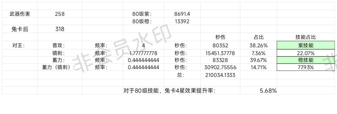 80级橙色跟紫色技能,兔卡4星效果的提升率: