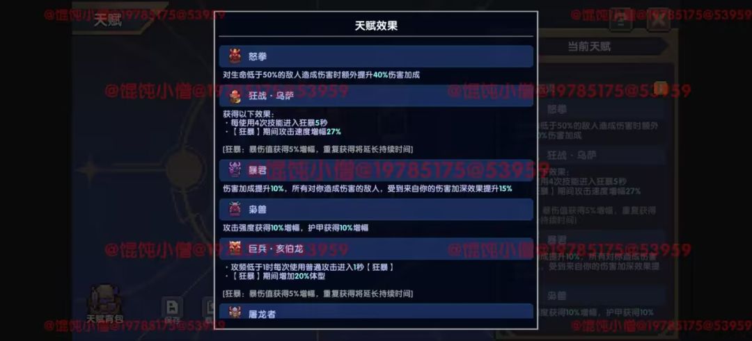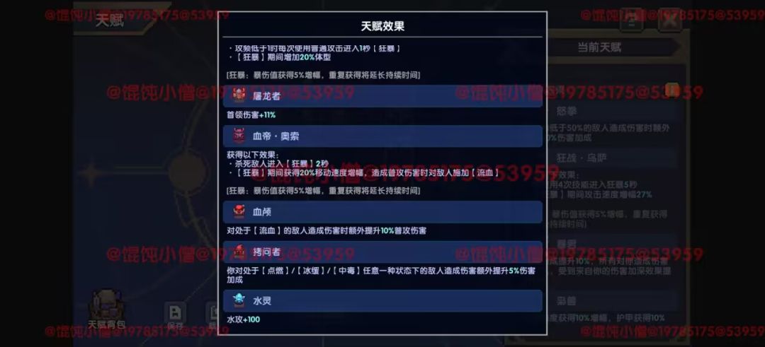 同时剩下的两个天赋小格,大家可以考虑跟楼主一样带上拷问者,或者有的友友们攻速/穿透差一点才够的,可以考虑更换为林守(10攻速)+贤者(40全属攻)/铁匠(150穿透)。