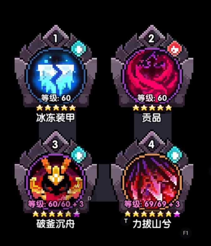 详解:(上图暗金装备为141关卡中试用较好的一套搭配)