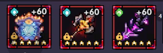 武器卡:素贞 (左) 烈焰龙皇(中) 传说勇者——术(右)