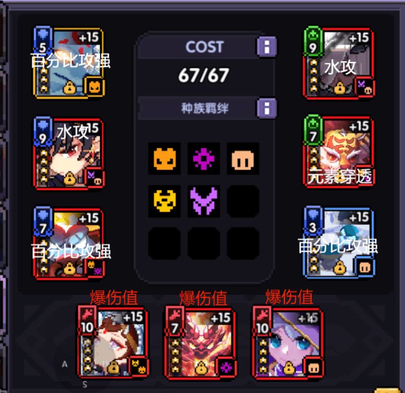 对于戟霸战来说,有着橙技能大约10%左右的穿透加成,护甲穿透要求压力不是很大,各位友友们,在满足关卡要求的暴击值及穿透要求后,再尽量将面板爆伤-水攻属性调成1∶5左右。