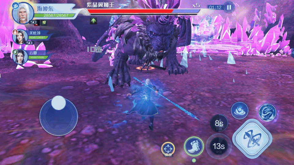 在游戏中,玩家不仅可以单枪匹马历练,更能多人组队战强敌!你可以邀上三五好友,合作挑战双头火灵蛇;也可以带上云韵、美杜莎等五位强者共同对抗紫晶翼狮王!在战斗中,你能巧妙躲避敌人攻击,击破弱点,瞬间爆发击败敌人;更能无延时切换操作角色,打出帅气的技能combo!游戏还加入了轻度SLG玩法供大家获取更多资源,快来在游戏中成立宗门、占领土地、抢夺资源,创造团队辉煌!