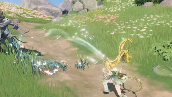 促使周围的草木急速生长,造成衍射伤害,回复附近队伍中所有角色的生命值,命中目标时给目标添加光合标记。