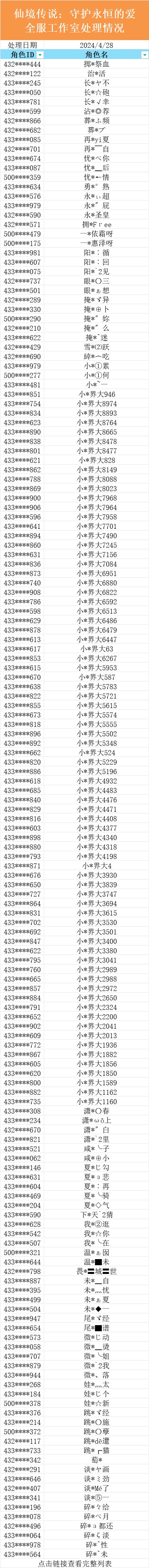 【2024/4/28】守爱全服工作室账号处理公示