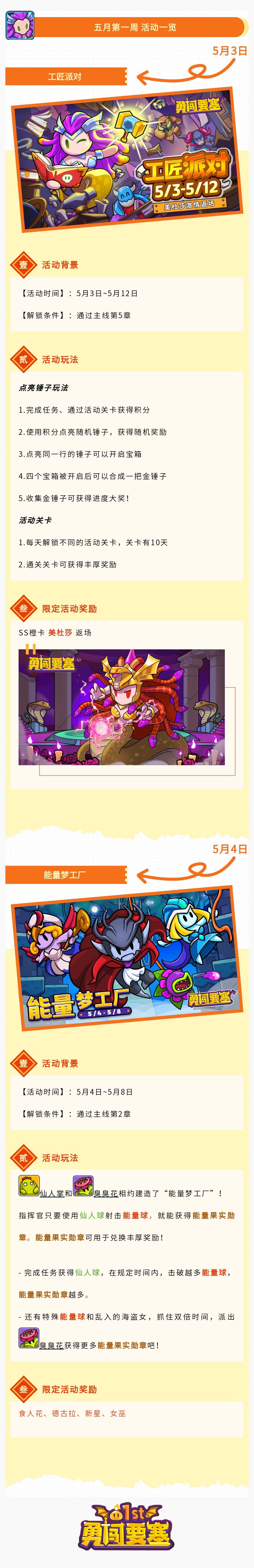 史莱姆带来了勇闯要塞五月第一周的活动预告。