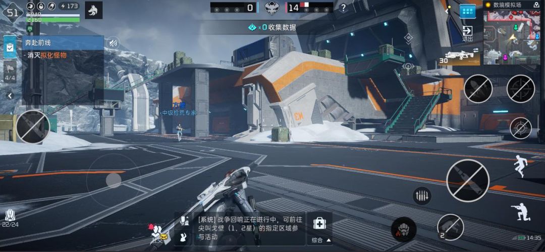 幸存者在组队完成后会被传入模拟测验场内。刚站稳,只见一群异种们喊着全军出击就蛄蛹了上来!训练开始后,场地内会不断刷新怪物,怪物被击败之后会掉落数据,幸存者靠近即可拾取数据。