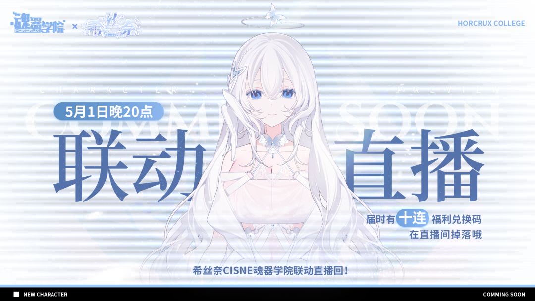 5月1日(周三)晚20:00 前往 希丝奈cisne 直播间,和天使姐姐希丝奈一起游玩魂器学院吧~