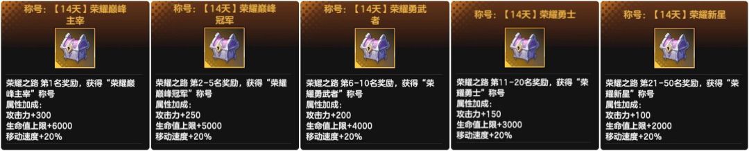 完成挑战的“成绩”将会根据难度的高低和用时的长短,在排行榜中进行排名。名列前茅的冒险者也将会获得荣耀称号、荣耀自选宝箱等奖励!