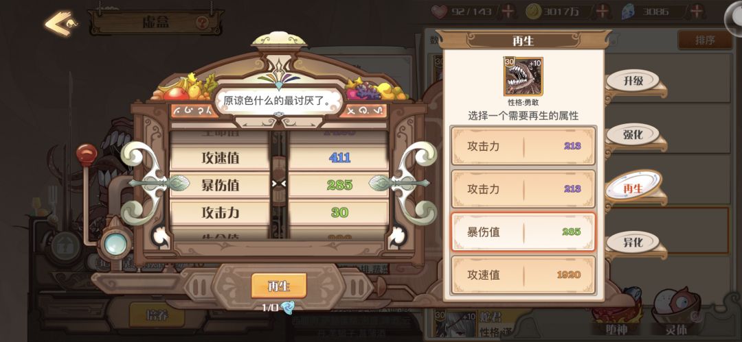 原来3紫攻击,我看材料又攒了500多个,好家伙,我觉得在洗一个橙色攻击应该可以。然后洗了半个多钟头,愣是给我恶心坏了,这东西你给我加个保底,1000次给个心仪的属性我都不会来喷,但是每次洗这个是我最恼火的时候,事先做好准备还是同样气的不行。这游戏对于非洲人来说,真的恶心,啥都是看概率,策划和运营都是宝才,游戏公司捡到鬼了。直接把坑钱给拉满了,玩了半年不到,已经1000多了,很少玩手游,这个充值金额也是给我惊到了,但是就是这样依旧该黑还是给你黑。还有协力的外观,我玩到现在就是不出,即使活动时期概率提高,我刷了一天,还是不给。去群里吐槽,还被说就是你脸黑。我就搞不懂了,这玩法开发出来,这外观搞出来,就是因为免费,90%都享受不到,那还不如删掉,纯粹恶心别人。