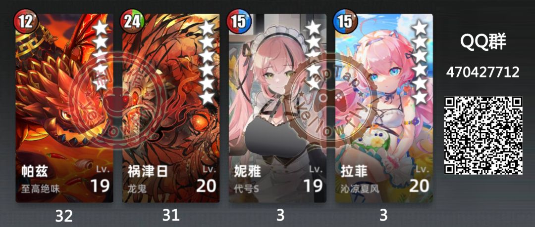 注:①含燦之红莲芙里娅的阵容可改为4312;