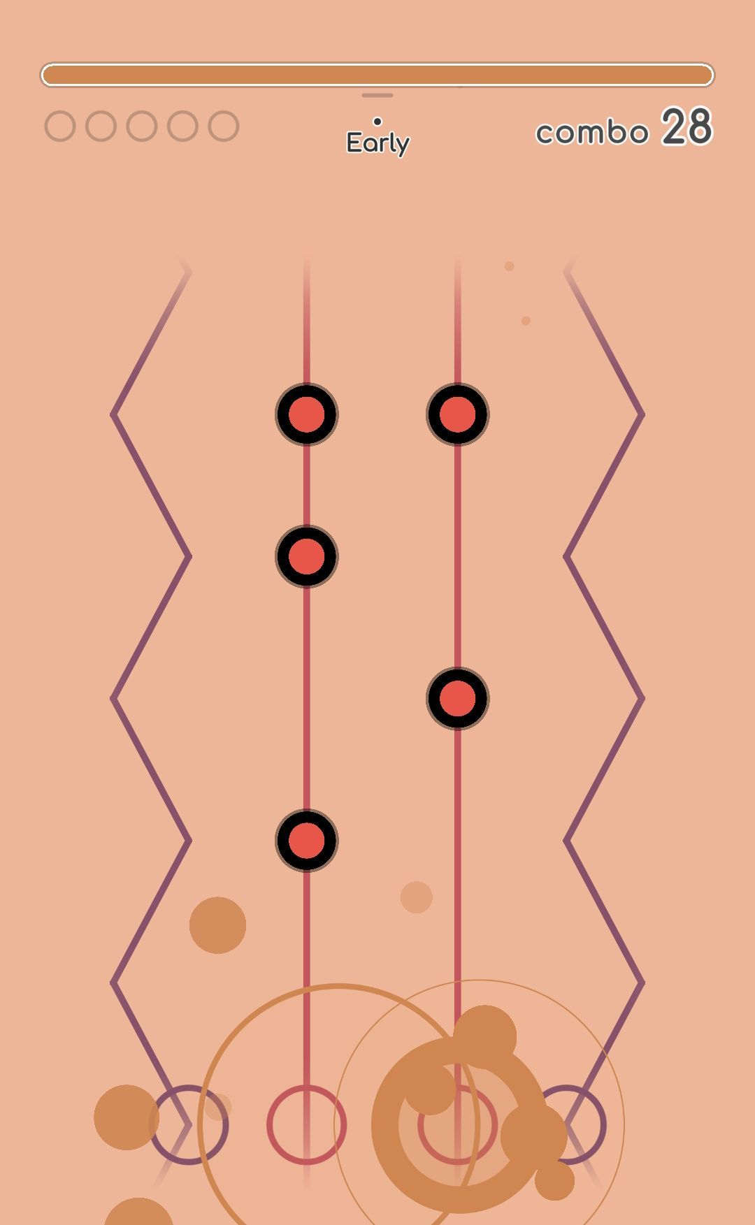 Early/Late是Riztime特有的Note种类。每个Early/Late判定会比一般的Hit判定少100分,但不影响Acc计算,因此你会发现你获得了120%的All Perceft判定但没有获得满分,问题便来自Early/Late判定。