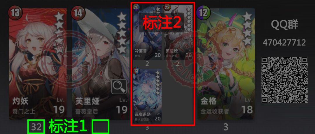 (1)图中角色正下方的数字表示建议开启的天赋,且数字顺序即优先级;正下方若无数字,则建议不开任何天赋。如图“标注1”。
