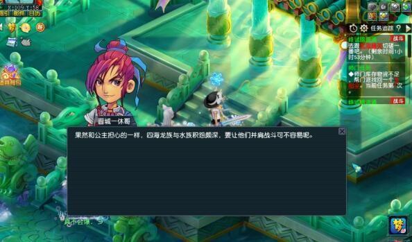 4、了解完老将们的情况后,再和灵汐公主(海试会场109,58)交流一下吧。
