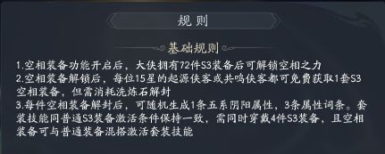 (一) 空相装备功能开启后,大侠拥有72件S3装备后可解锁空相之力;