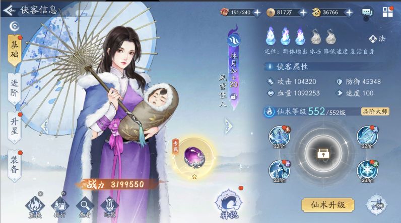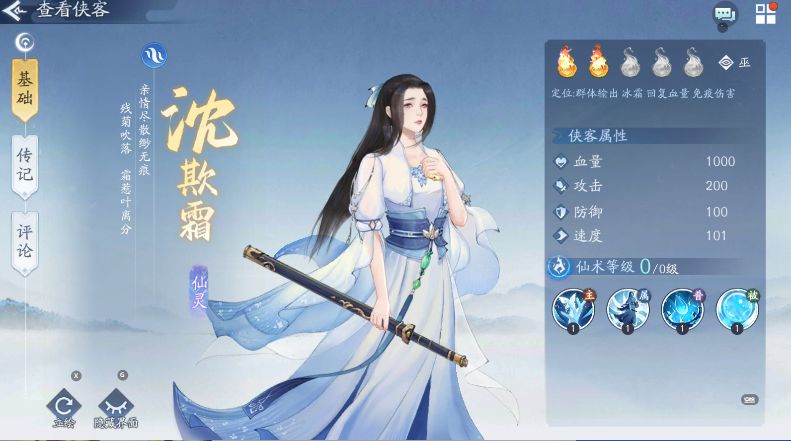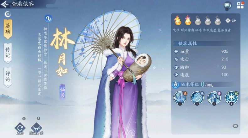 水月如——全体冰冻1-2,死亡概率怒招再一次进行冰冻,只要水月如出手基本可以冻2-3个侠客