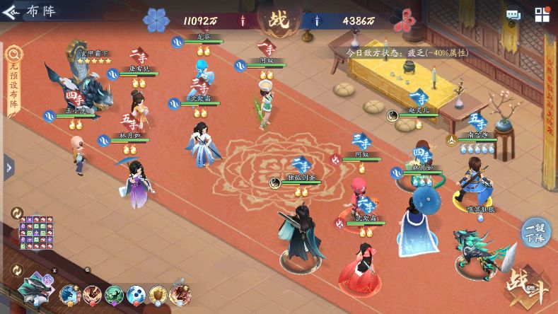一号位水月如——怒招冰冻、死掉怒招又是冰冻,全体怒招输出,战力指数SS