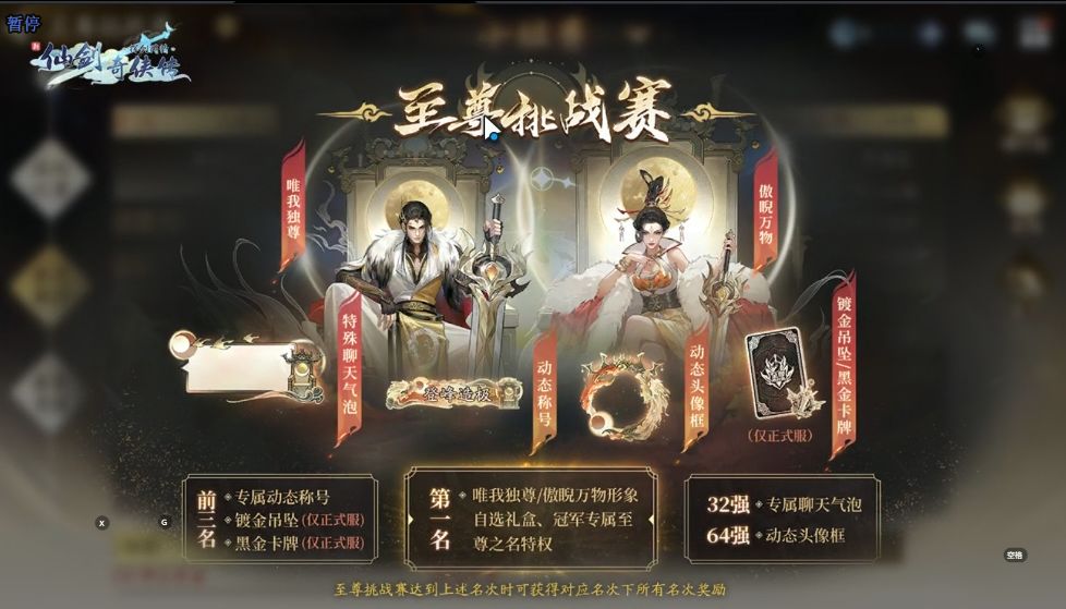 荣誉殿堂中汇聚着每个赛季至尊挑战赛的所有参赛玩家,每届比赛结束后的15天内,可前往荣誉殿堂膜拜当届冠军,并可获得随机膜拜奖励2.比赛结束后,将通过系统邮件按比赛名次为大侠发放游戏道具奖励。