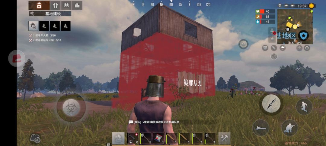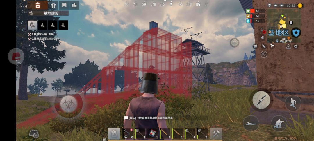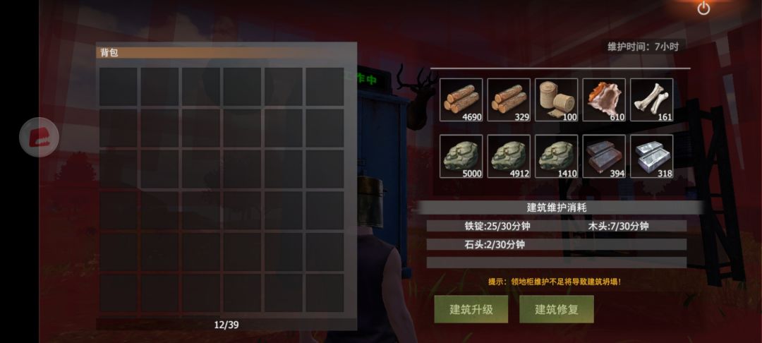 三层建筑,下两层是铁质的全部损坏,第三层是木制的没事,领地柜正常工作,还可以维护七个小时。旁边立的台阶也是木质的但全部损坏。