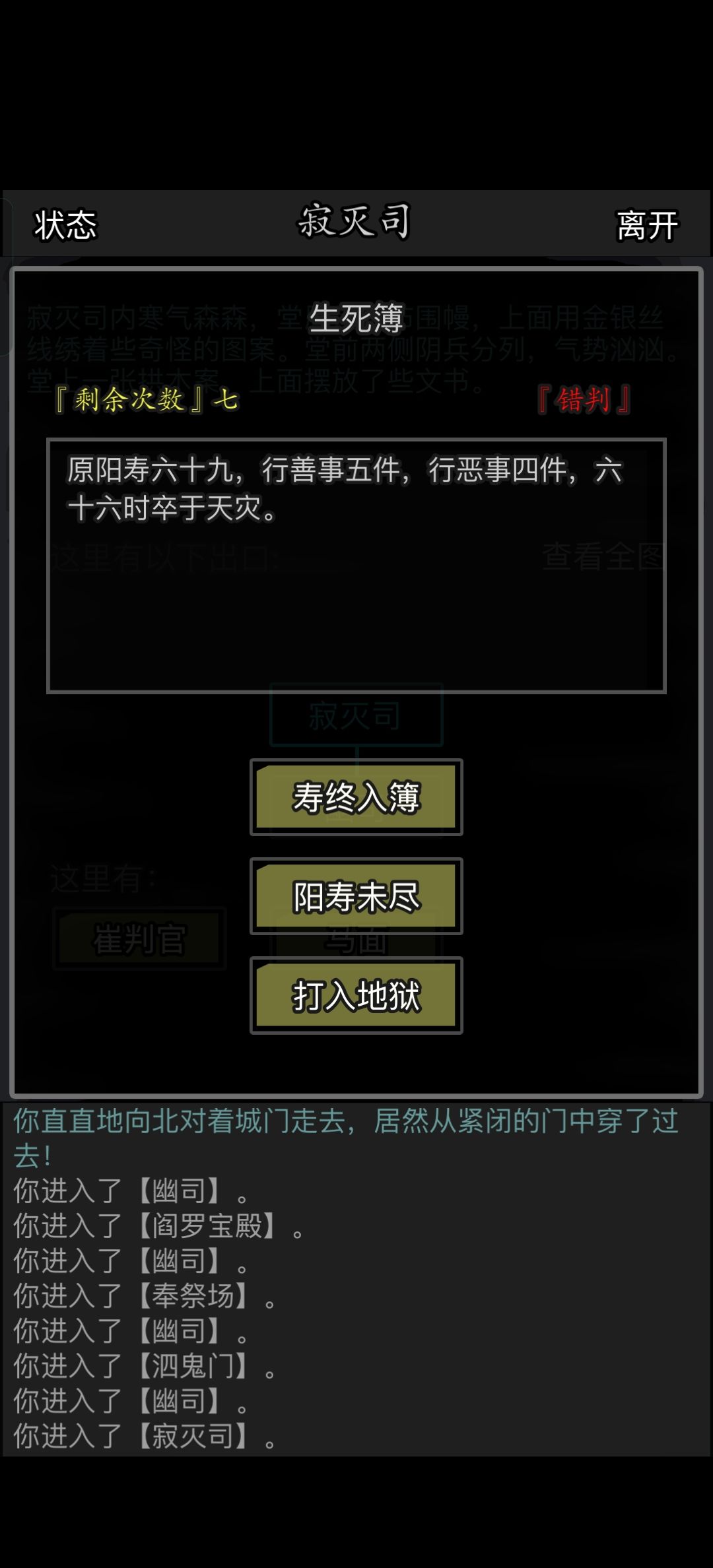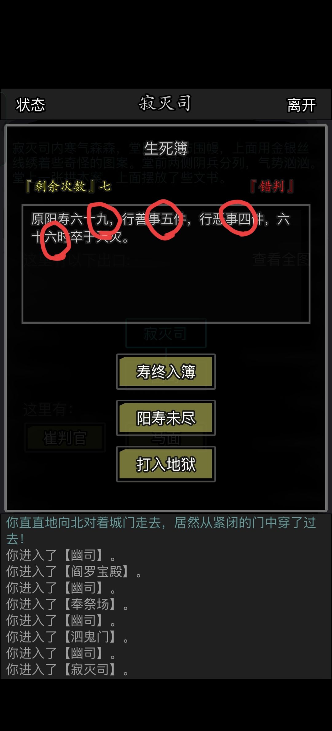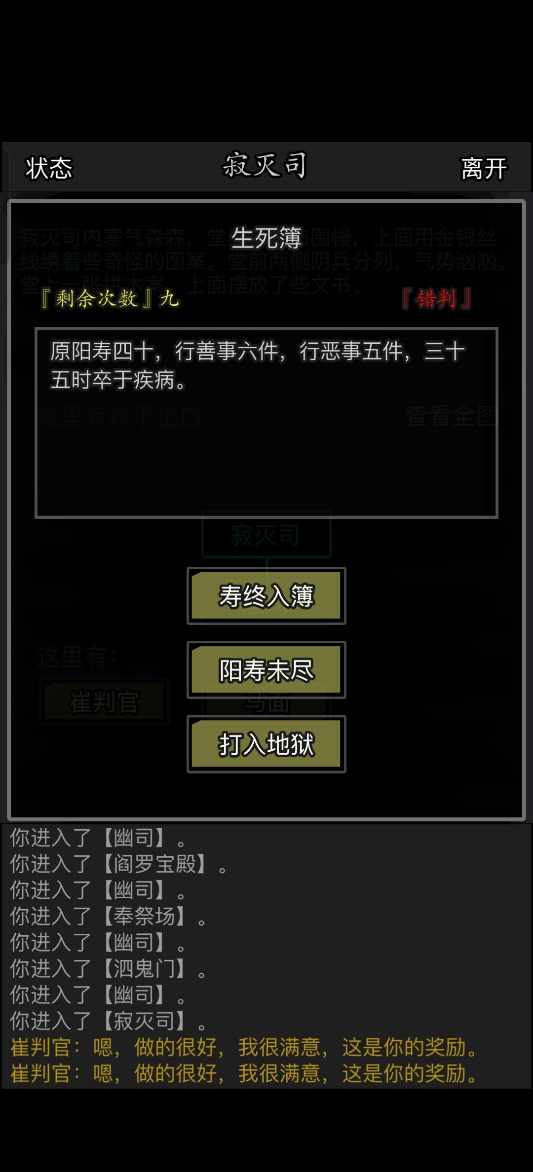 → 如果结果是“大于”,那就选“阳寿未尽”