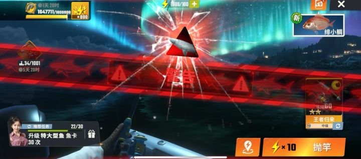 钓鱼的基本步骤: 抛竿>收线+摆杆>拉杆取鱼抛竿:很容易理解吧,就是甩杆,开干。收线:最核心的一个步骤了,这里我们需要注意线的张力,如果太大的话,可是会断的。摆杆:在收线过程张,有时候会需要我们通过摆杆来进一步消耗鱼的体力。反正我们只需要根据提示左右滑动就可以了。