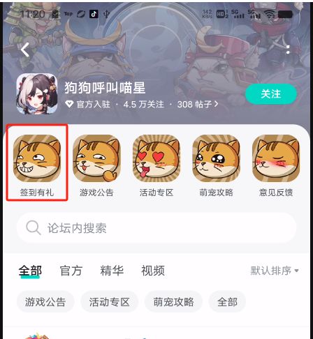 前往TapTap搜索“狗狗呼叫喵星”,进入游戏详情页→游戏论坛→论坛顶部推荐图标“签到有礼”即可进入签到页面