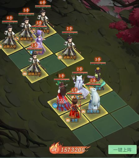 四手放4号位,普攻有连击效果并且攻击整列目标,配合巫后、剑圣在巫后释放技能前清理掉对面第一只小怪,确保巫后技能命中对面后排三只怪,同时对面夕瑶后面的小怪最难清,温慧可以对其造成伤害。