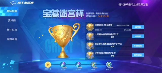 活动期间,车友们可通过完成活动的对应任务获得奖杯,用以兑换能量水晶和酷币。另外,奖杯总榜结算时前三名车友,更可获得对应赛道的永久车牌和赛车抵金券!